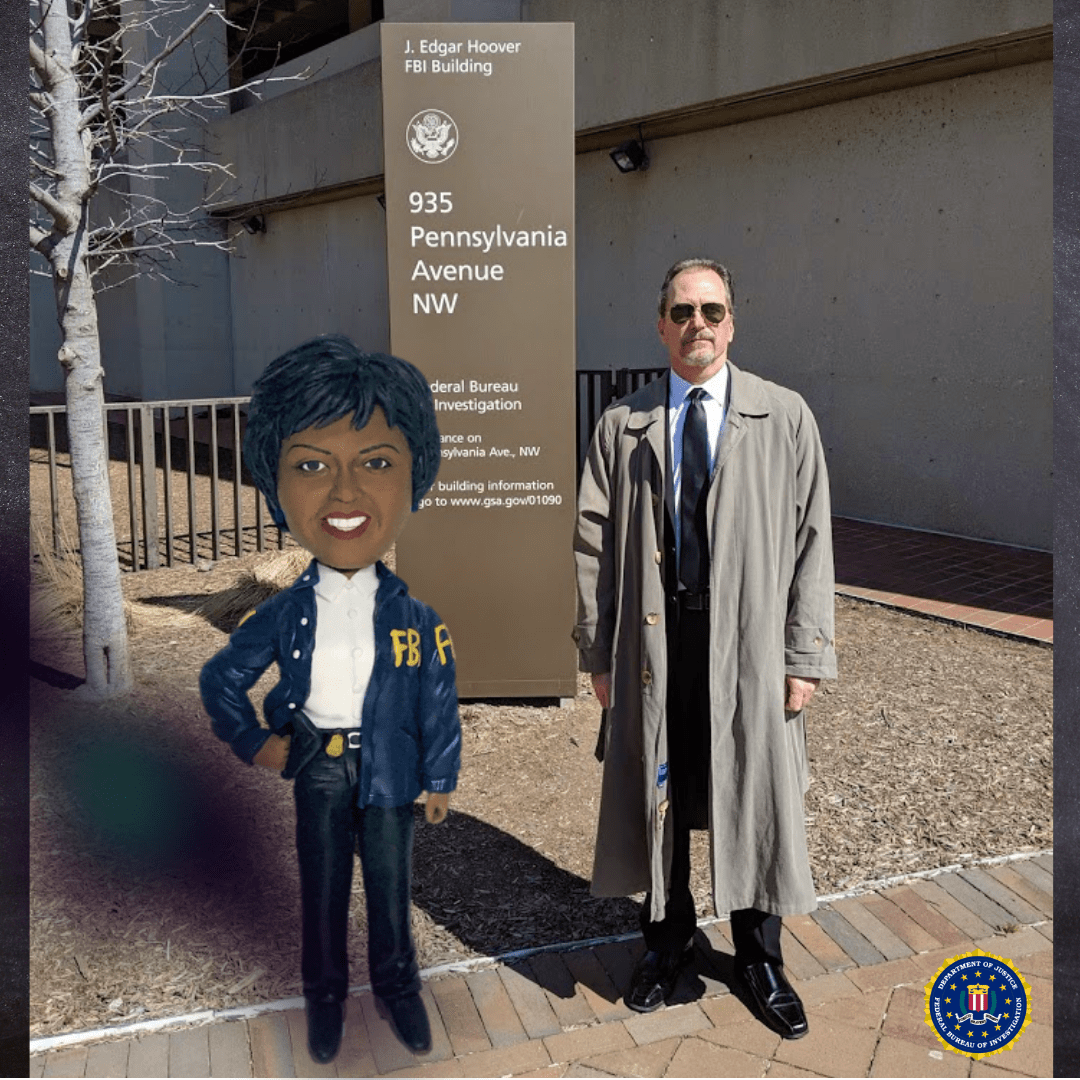 Little Jerri's On The Job FBI Agent Little Jerri is deployed on assignments around the world, where she gets into all kinds of "good trouble." Ready to send her on an adventure? Learn how here. #littlejerriFBI Before the big reveal! Meet #LittleJerriFBI Use this Little Jerri FBI png. file to create images. Try Canva, it’s free and easy. Guest star on CBS TV show FBI FBI Retired X-Files Review – Mark Van Unen Guarding Kamala A day at SFO Helping local officers secure the airport Participating in an emergency exercise Welcoming the Blue Angels Governor Newsom and former Governor Schwarzenegger thanking Jerri for her services at SFO Party at the Overlook Hotel Agents of S.H.I.E.L.D. Visiting the MurderMurder News Cult Commune Checking in on Clarice and Hannibal Lecter Little Jerri hopped on a time machine and joined the cast of Hill Street Blues No donuts for this LEO. Going back in time to tell Director Hoover hiring women and more Blacks worked out after all Receiving an award from Director Wray for the best FBI podcast With new rookie informant Traci Shine on a missing in action adventure On a trail run on Mount Jumbo in Missoula, Montana On a nature walk with buttercups and elk droppings. Encouraging the growth of the book stack. Visiting the Boston Division’s new offices Congratulating Bob at his retirement party An evening in Paris With Darryl Loy visiting the Hoover Building At the Bank of Hogan with FBI Dallas Citizens Academy Assisting with the arrest of Dr. Hannibal Lecter Hiking in Vail, Colorado Attending the Renaissance Festival in Larkspur, Colorado Grabbing a snack at the In-N-Out Burger in Lone Tree, Colorado, Walking the beach at Lake Michigan in Empire, Michigan Enjoying the front range in Colorado Springs Bravely and carefully posing on frozen Echo Lake near Evergreen, Colorado! At the Smithsonian National Air and Space Museum with listener Hannah Little Jerri FBI nips notorious dog trafficker Chico The Chi in Arizona A day at the beach in Co. Kerry, Ireland She wasn’t satisfied just riding the train Little Jerri FBI had to drive the Pullen Park train Hanging out on Halloween, she ain’t afraid of no ghosts. Look who has a new boyfriend Little Jerri gets into the Christmas spirit Joining the unconventional Santas collection Merry Christmas and Happy New Year! Want to buy me a coffee? Visiting the MLK Memorial FBI aren’t Super Heroes, but somestimes get to hang out with them. Little Jerri checking out rumors of nefarious dealings in the Blue Garden, Newport, Rhode Island Vegas baby! Visiting the FBI Anchorage Field Office It’s a little chilly at the Aialik Glacier in the Kenai Fjords National Park, Alaska Hanging w/ BFFs Karen and Goergia In Norway on a Viking ship With a sea eagle in Lofoton, Norway Breast Cancer Awareness. Schedule your mammogram! In the holiday spirit! Investigating a theft at the Louvre At Marlton Girl Talk Friendsgiving Teaching discreat mathematics at UCSD. Happy Book Pub Day, Isabella! With Eamon on holiday in Alicante, Spain New adventures in 2024!
